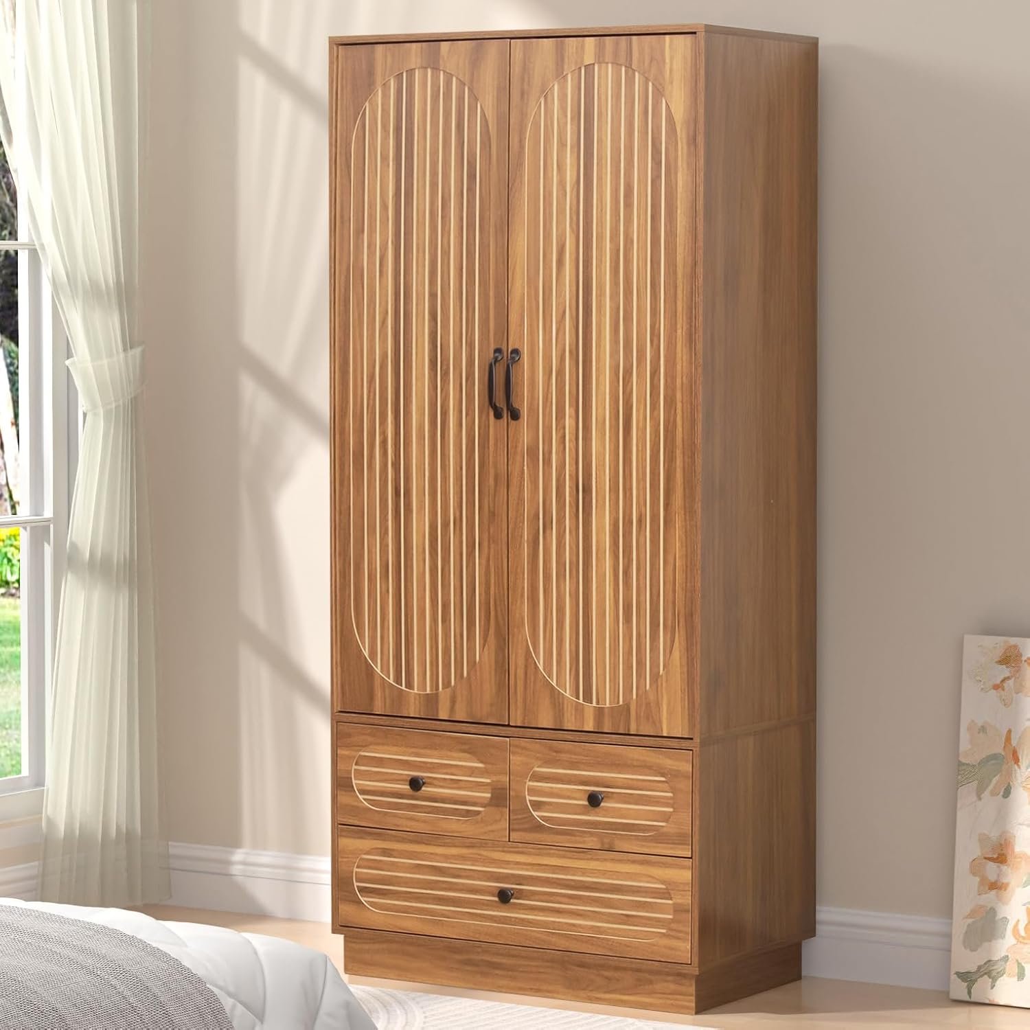 Custom Wholesale Wooden 2-Door Wardrobe with Drawers | Retro-Style Bedroom Storage Closet-JMJ-W010