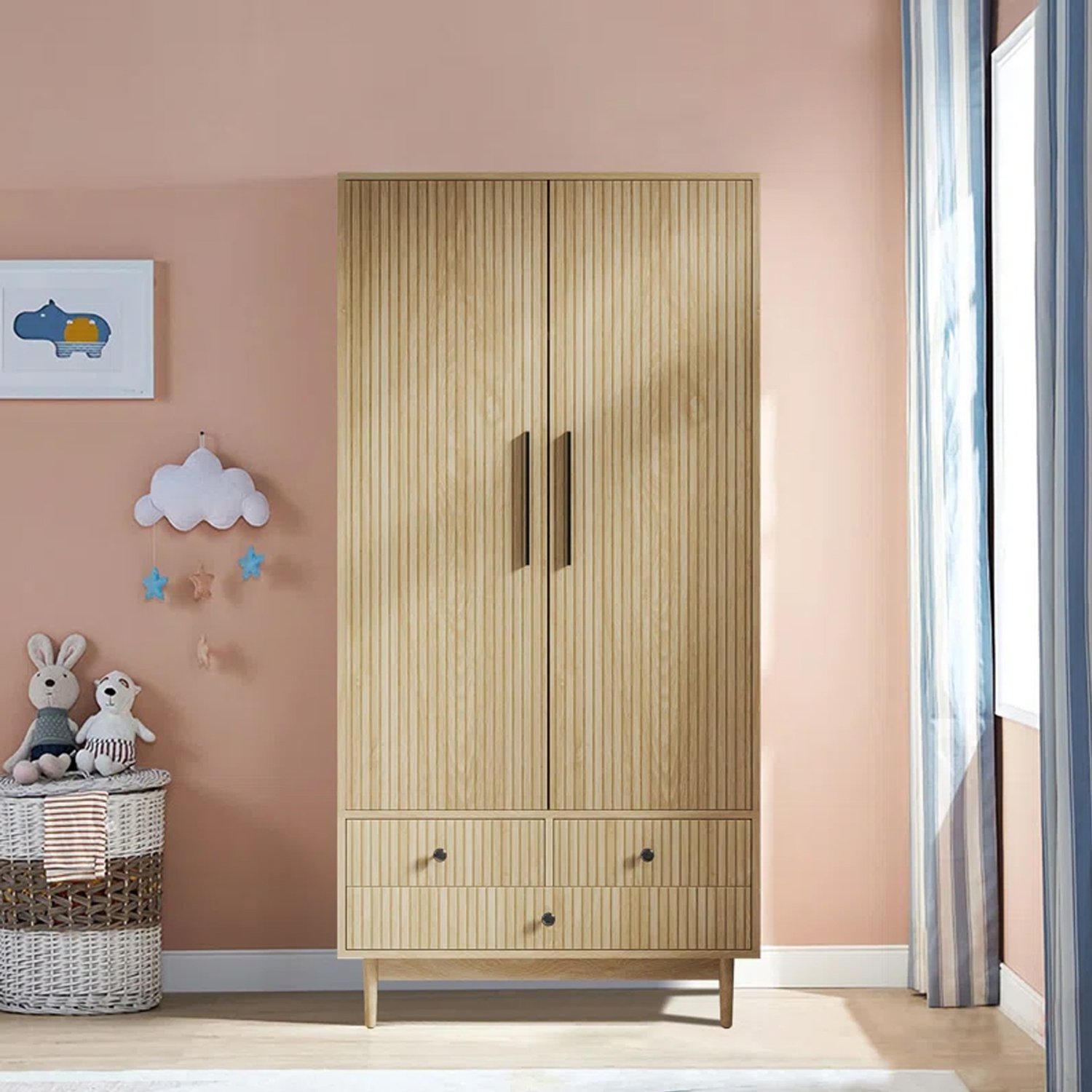 Custom Wholesale Wooden-Look 2-Door Kids Wardrobe with Drawers | Nordic-Style Children’s Bedroom Storage Closet-JMJ-W011