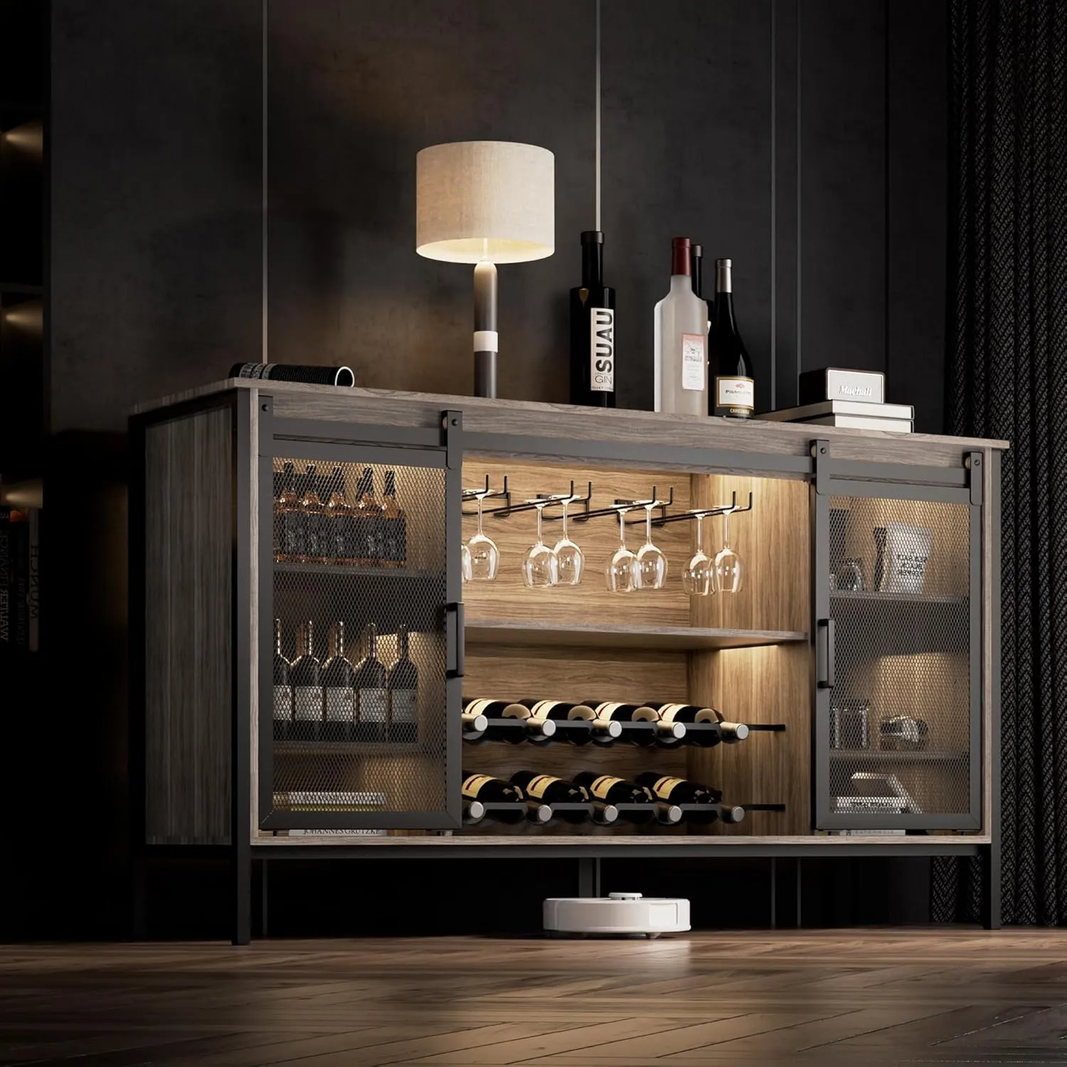 Modern LED-Lit Multi-Functional Wine Cabinet | Glass-Door Home Bar Storage for Retailers-WC-K08