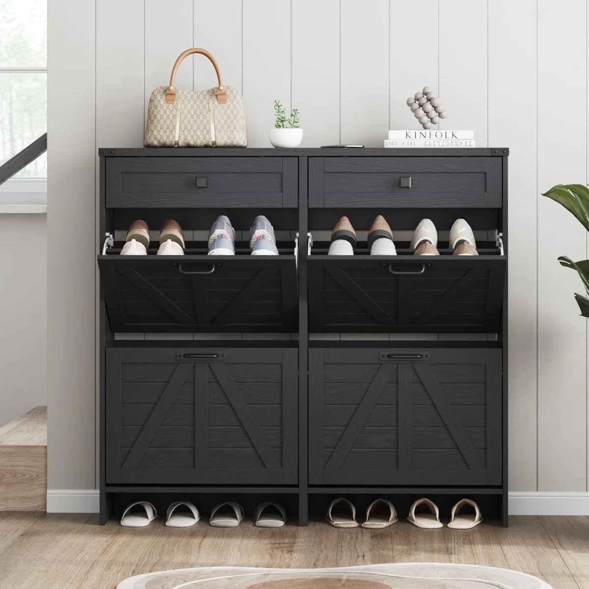 OEM/ODM Multi-Layer Flip-Down Shoe Cabinet | Bulk Supply with Customizable Storage for Furniture Retailers-JMJ-S008