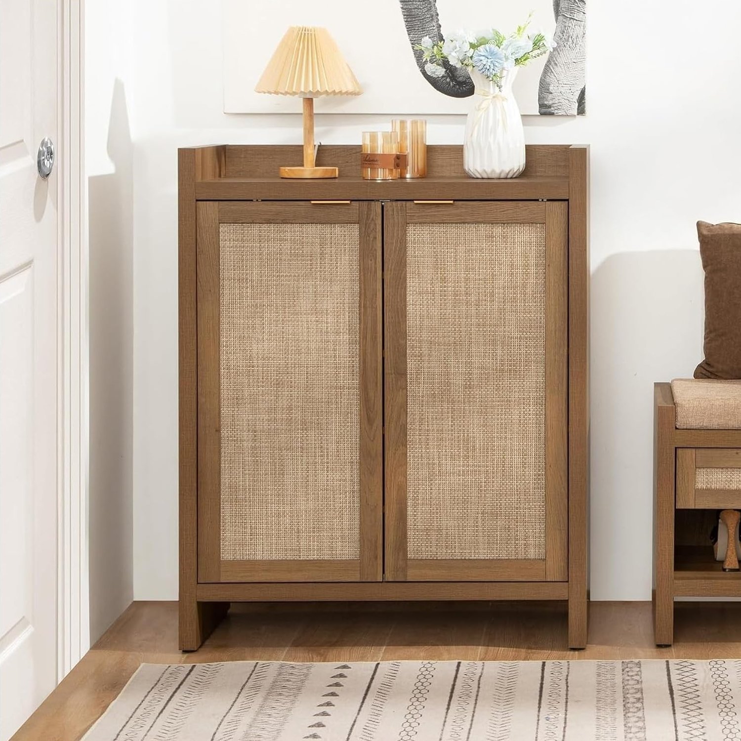 Mid-Century Modern Rattan Door Shoe Cabinet – Chic Entryway Storage for Tidy Home-JMJ-S003