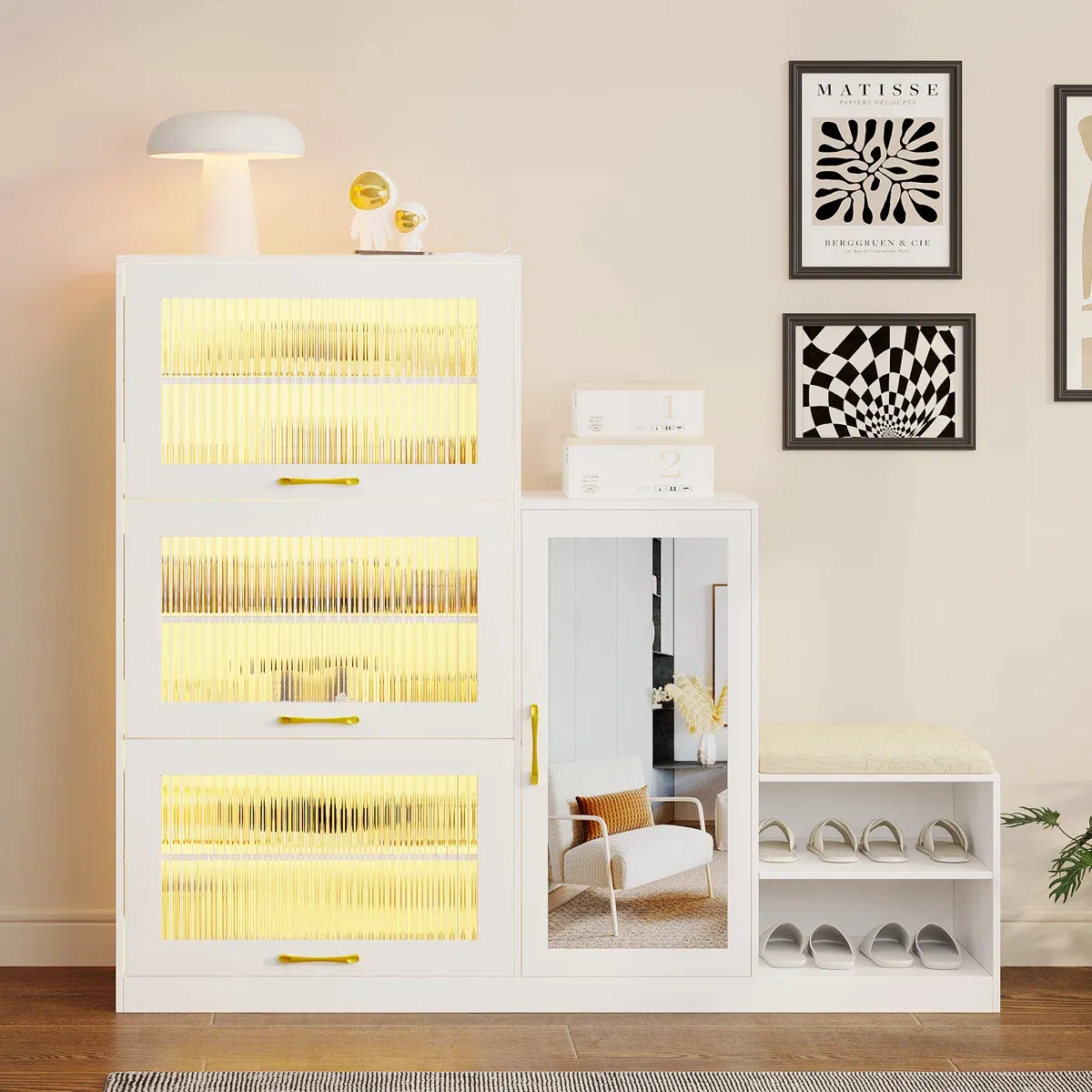 Wholesale European Modern Design Luxury Three Layer Shoe Cabinet Living Room Entrance White Flip Top Shoe Cabinet Storage-JMJ-S018