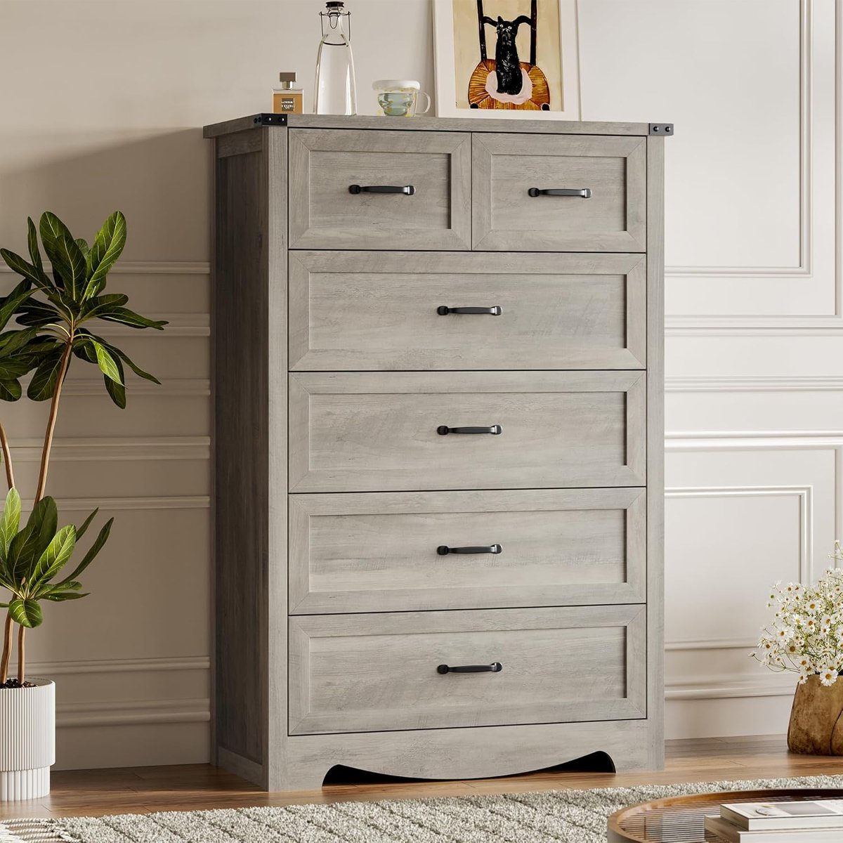 • Suitable for bedrooms or living rooms of various sizes, the multi-drawer design keeps items organized, and the black industrial style adds texture, making it a perfect choice for creating a tidy and stylish storage space.
