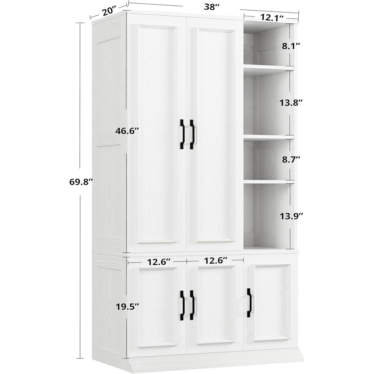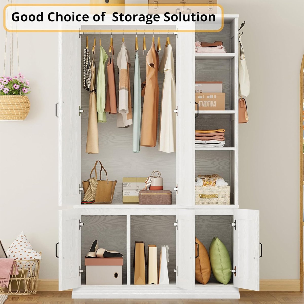 Custom Wholesale White Multi-Door Wardrobe | Nordic-Style Multi-Functional Storage Closet with Open Shelves & Hooks-JMJ-W003