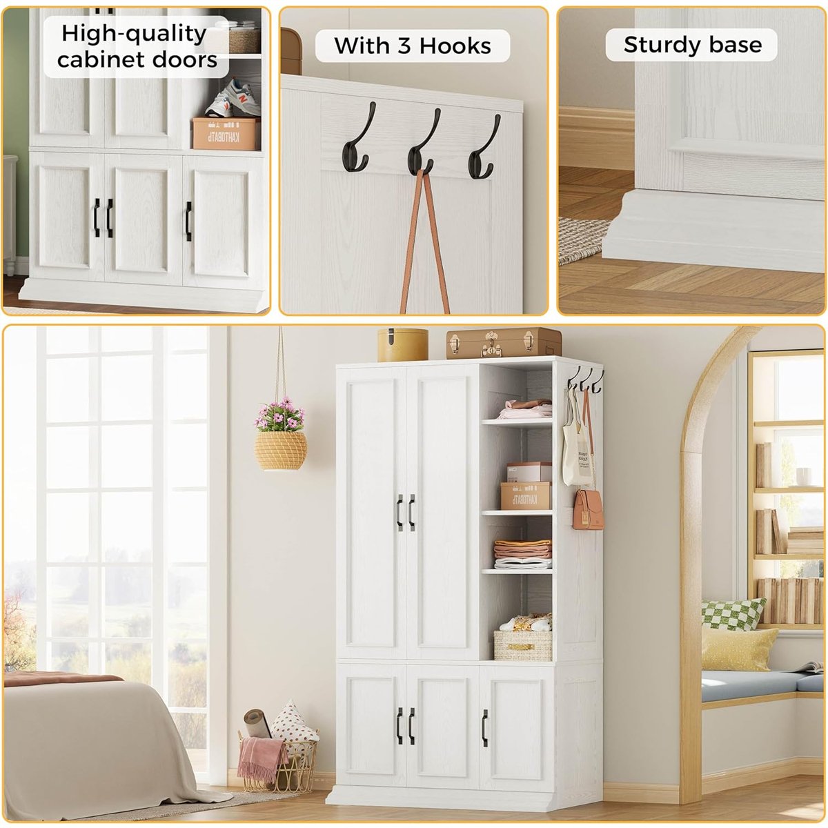 • Multi-Zone Storage Layout: Combination of closed cabinets, open shelves, and side hooks allows for categorized storage of clothes, accessories, daily items, and bags. It maximizes vertical space, keeping living areas tidy.