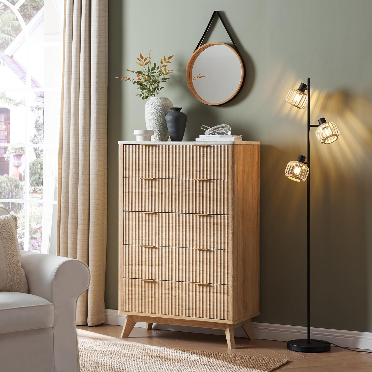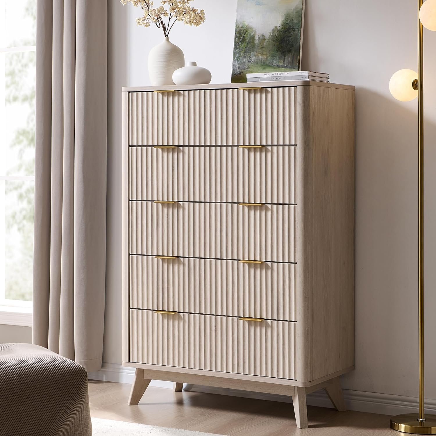 • 5-Drawer Ample Storage Capacity: Features five spacious drawers for classified storage of clothes, accessories, sundries, and more, keeping your bedroom or living room organized and clutter-free.