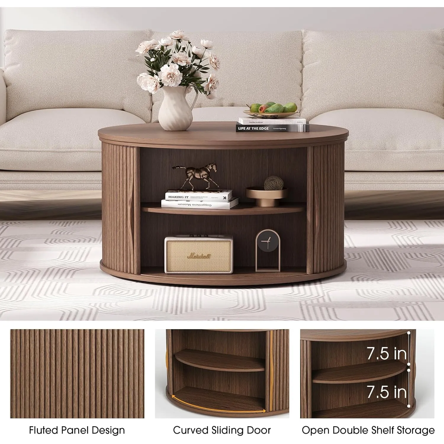 Dark Wood Round Lift-Top Multifunctional Coffee Table | Modern European Style with Multi-Layer Storage for Living Room-JMJ-CT009