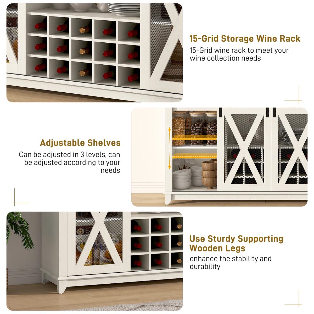Farmhouse Style Multi-Storage Kitchen Buffet | All-in-One Dining & Kitchen Organizer for Retailers-WC-K07