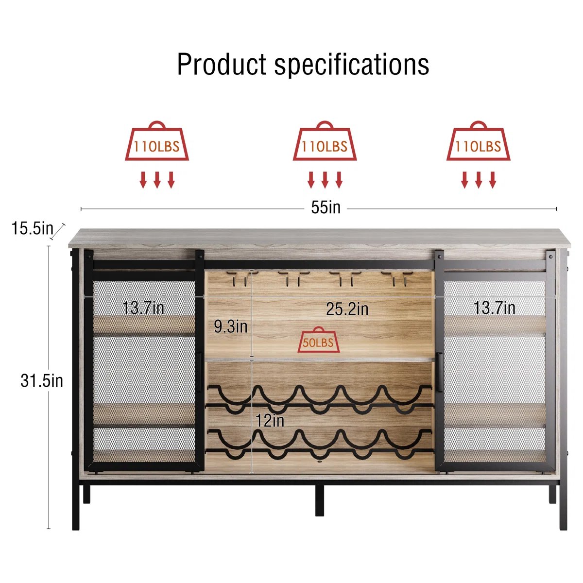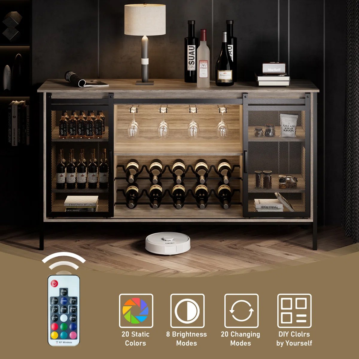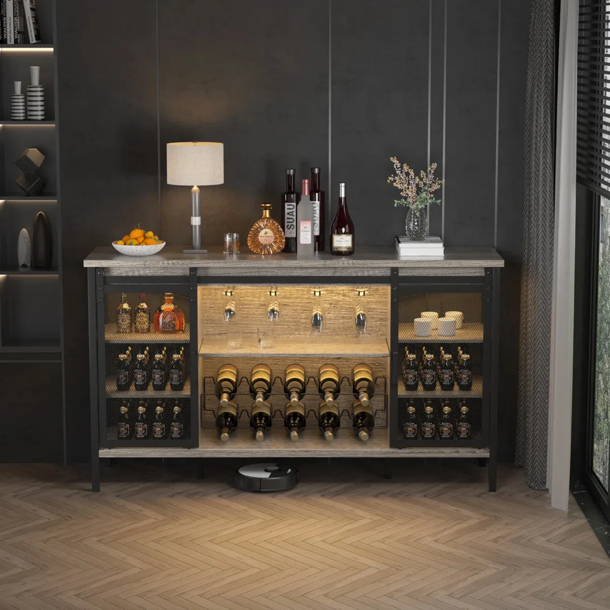 • Multi-Zone Wine & Glass Storage: Features built-in wine racks, glass holders, and open compartments, organizing wine bottles, glassware, and bar accessories neatly to solve home bar clutter pain points.