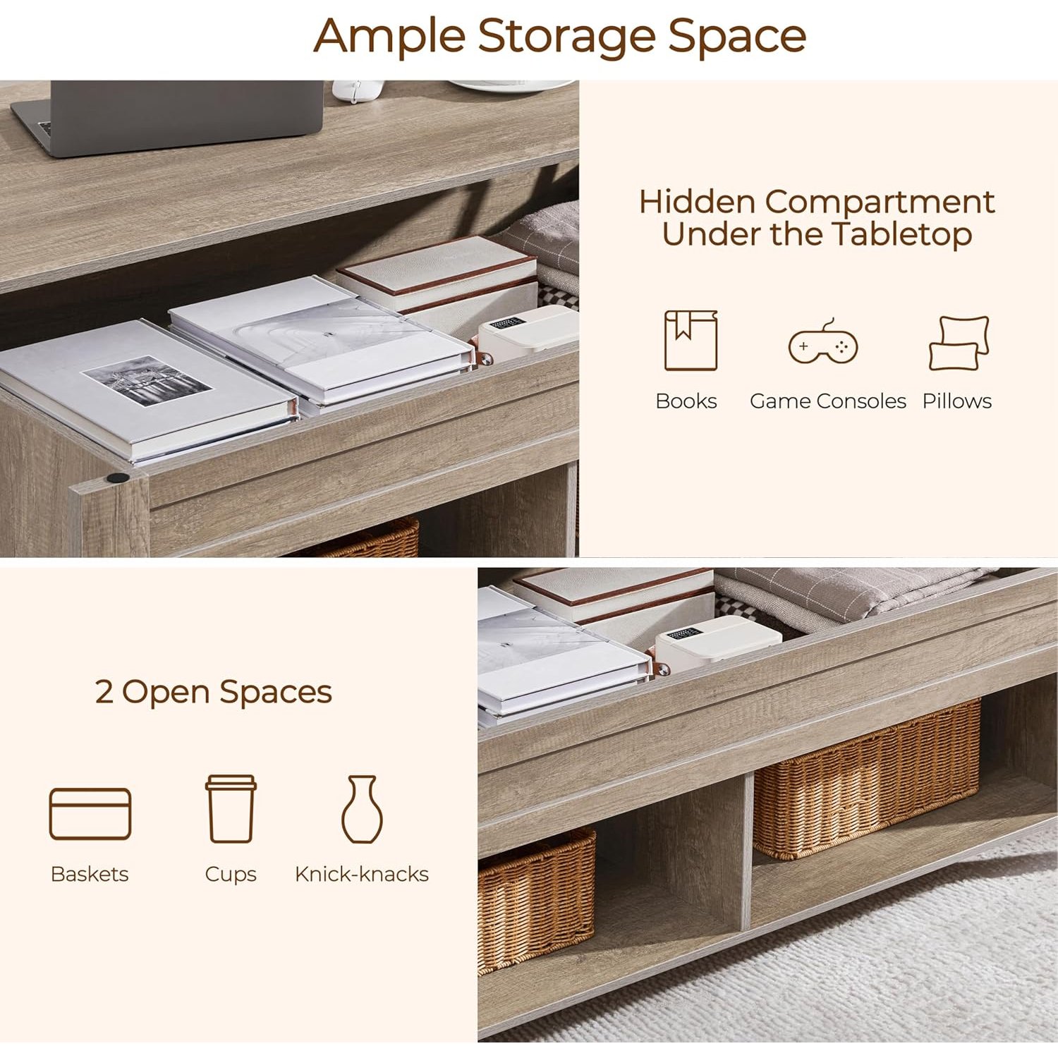 • Lift-Top Design & Multi-Scenario Use: The adjustable height tabletop transforms from a coffee table to a work desk or dining surface instantly, ideal for laptops, meals, and decor, enabling seamless switching between leisure, office, and dining scenarios in your living room.