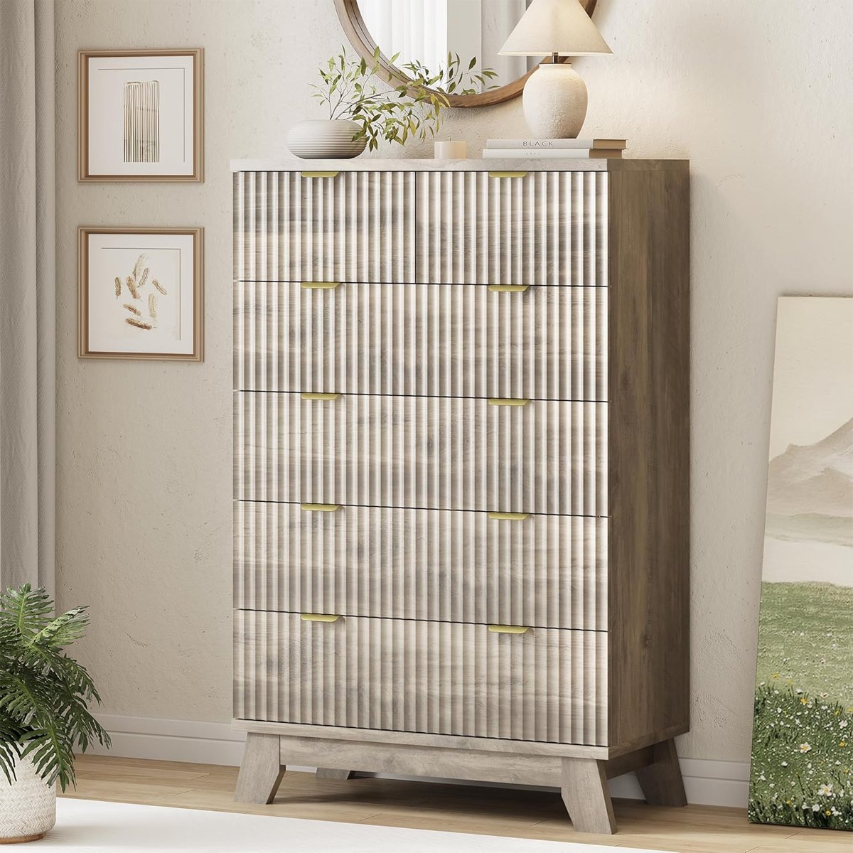 • Versatile Application: Suitable for bedrooms or living rooms of various sizes. The fluted design adds texture, and the multi-drawer structure keeps items organized, creating a tidy and stylish storage space.