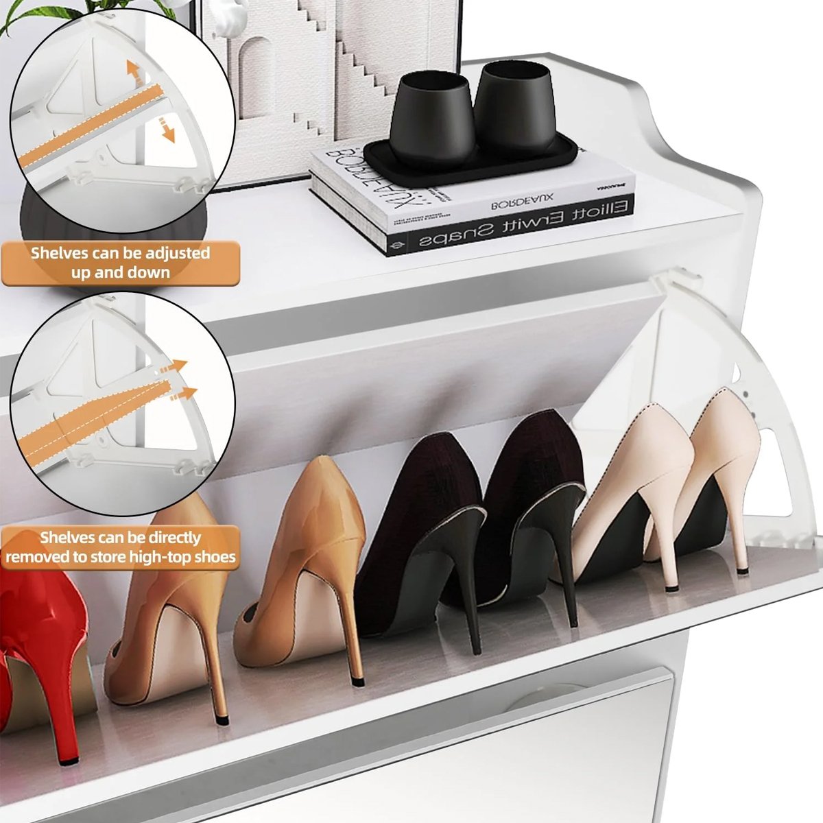 White Multi-Functional Shoe Rack with Mirror | Space-Saving Decor Essential for Home Retailers-JMJ-S017