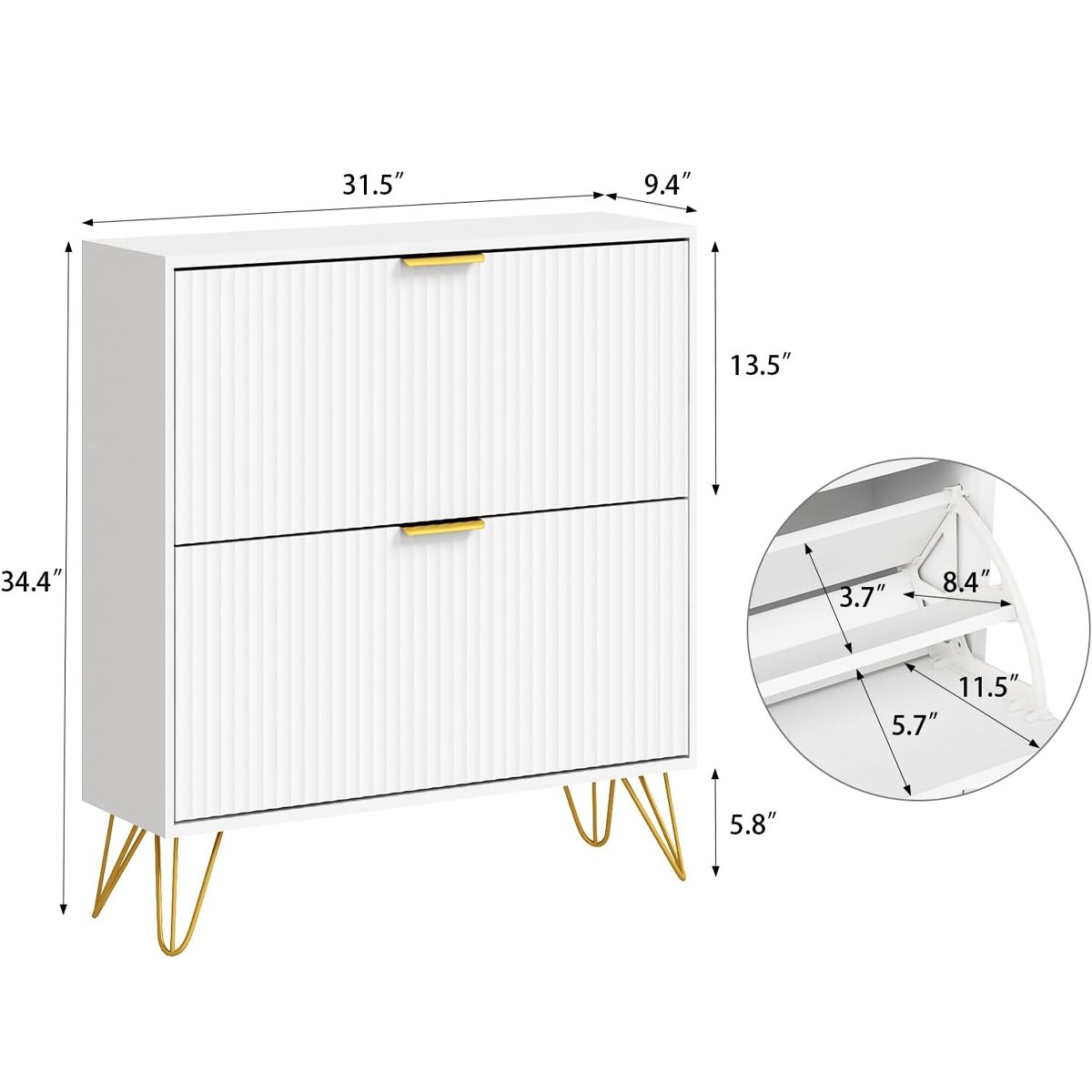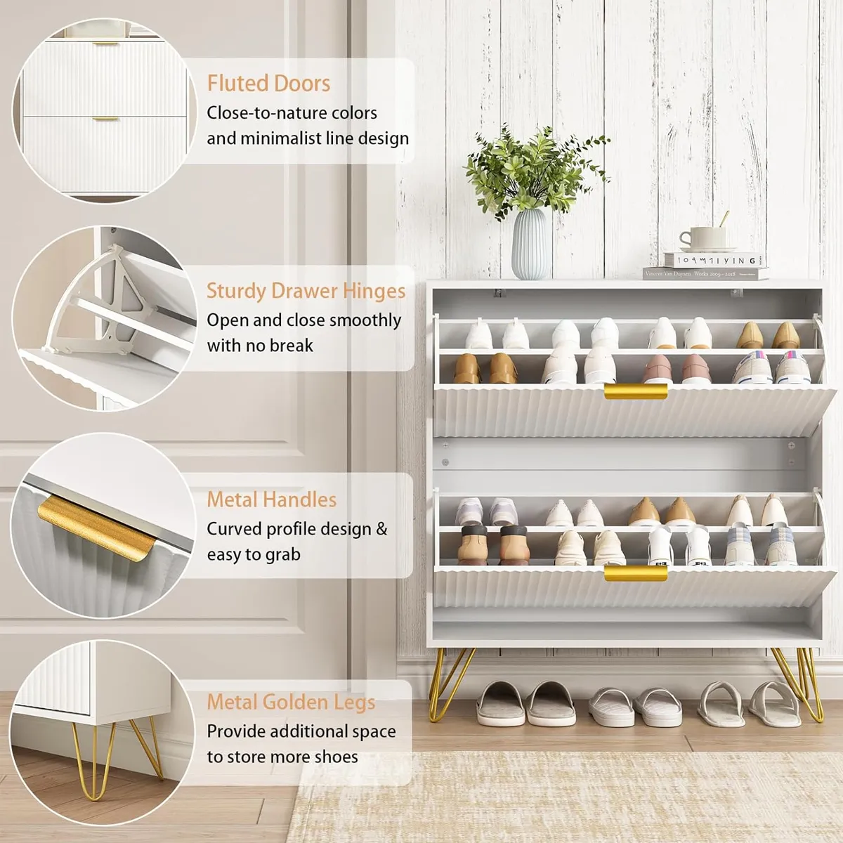 Wholesale Modern White Flip-Down Shoe Cabinet with Gold Accents | Bulk Supply for Home Retailers-JMJ-S013